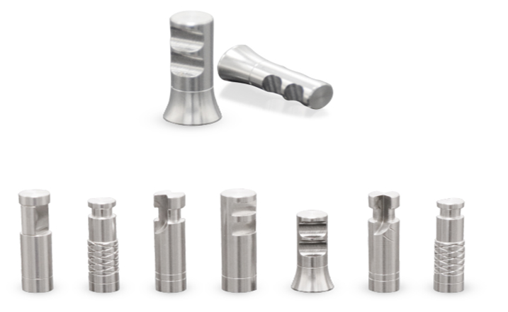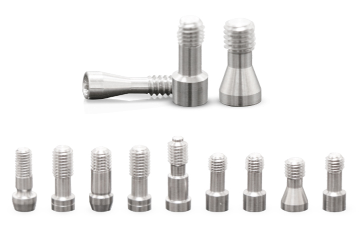 钛柱由符合GB/T 13810-2017(ASTM F136)标准中规定的TC4 ELI材料经日本进口Star品牌CNC全自动车床加工而成,表面未经过任何其它处理。该产品用于制作个性化匹配式定制基台,接口端精密,能适用于不同品牌的植体。